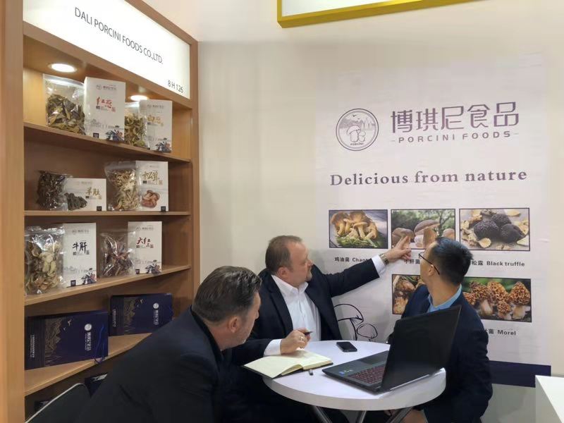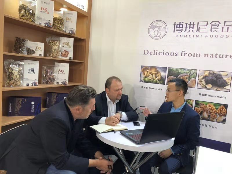 展會(huì)第一天,外國(guó)客商在博琪尼食品有限公司展位前紛紛駐足,詢問(wèn)產(chǎn)品相關(guān)信息,了解產(chǎn)品質(zhì)量、規(guī)格等,客商們對(duì)博琪尼食品公司優(yōu)質(zhì)的產(chǎn)品質(zhì)量及豐富的出口經(jīng)驗(yàn)給予充分肯定。其中,來(lái)自波蘭的客商Stanistaw Tomkowiak及其合伙人與博琪尼總經(jīng)理龔瑞波進(jìn)行洽談之后,就公司主營(yíng)產(chǎn)品速凍牛肝菌達(dá)成合作意向,初步訂購(gòu)數(shù)量為兩個(gè)柜,并有意簽署長(zhǎng)期合作合同。法國(guó)客商April對(duì)博琪尼出口產(chǎn)品速凍松茸頗為感興趣,表示在法國(guó)越來(lái)越多的餐廳選擇用優(yōu)質(zhì)松茸及牛肝菌作為輔材加入到菜品當(dāng)中,并受到食客的喜愛(ài),法國(guó)對(duì)菌類的需求有增無(wú)減,希望與博琪尼達(dá)成合作,將中國(guó)的優(yōu)質(zhì)菌類帶給法國(guó)人民。